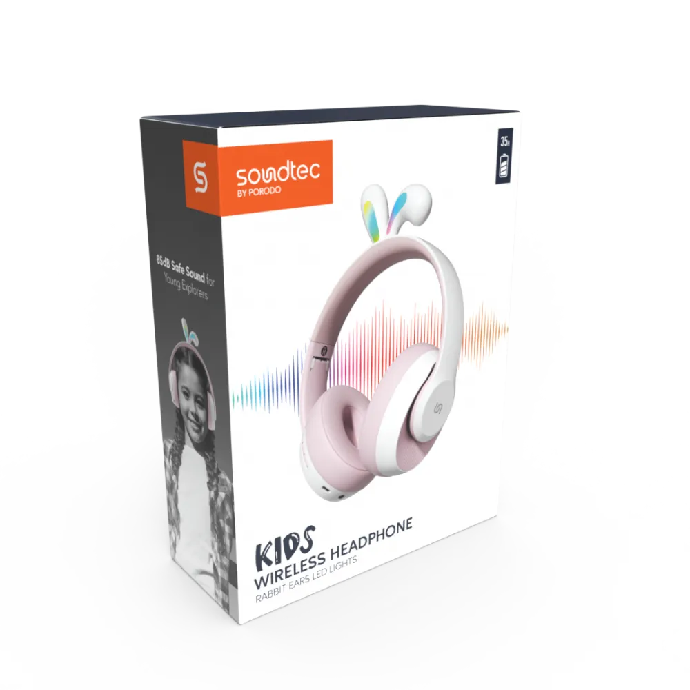 هدفون بی‌سیم کودکانه Pordoo Soundtec ترکیبی شاد، امن و کاربرپسند برای کودکان است. این هدفون با طراحی بامزه‌ی گوش‌های خرگوشی مجهز به چراغ LED، علاوه بر سرگرمی، محافظت شنوایی نیز برای کودکان فراهم می‌کند. صدای محدود شده به ۸۵ دسی‌بل از ویژگی‌های ایمنی کلیدی این محصول است که اجازه می‌دهد کودک شما بدون خطر آسیب به گوش، ساعت‌ها به موسیقی گوش دهد.
