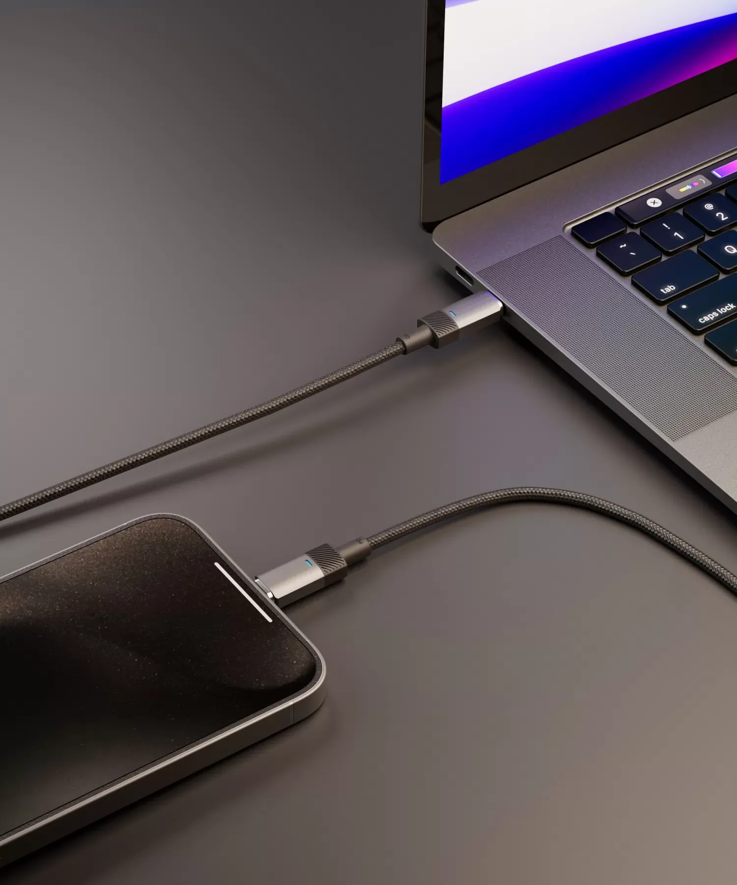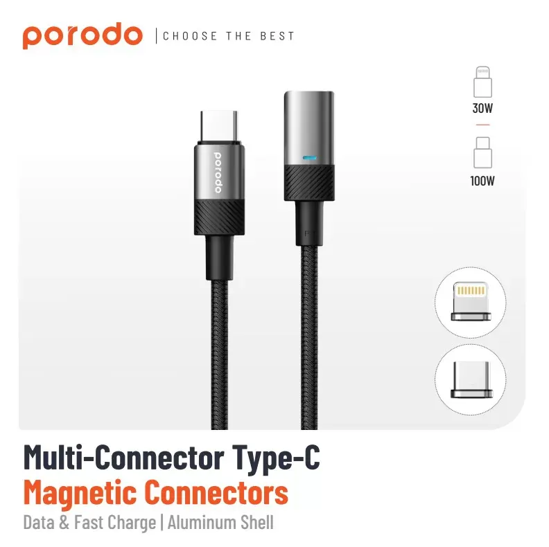 Porodo Braided 100W PD C to C+L Fast Charging cable with Magnetic Head 1.2M