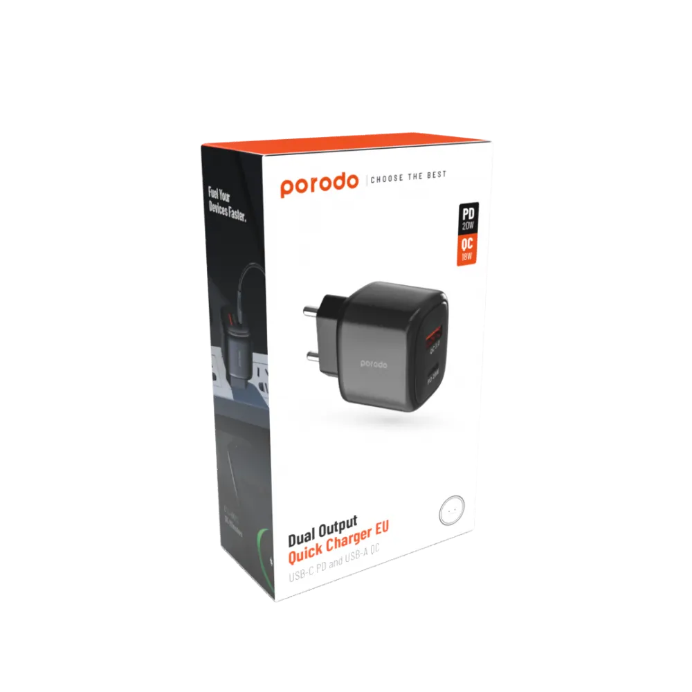 Porodo 20W+QC USB A+C Charger EU