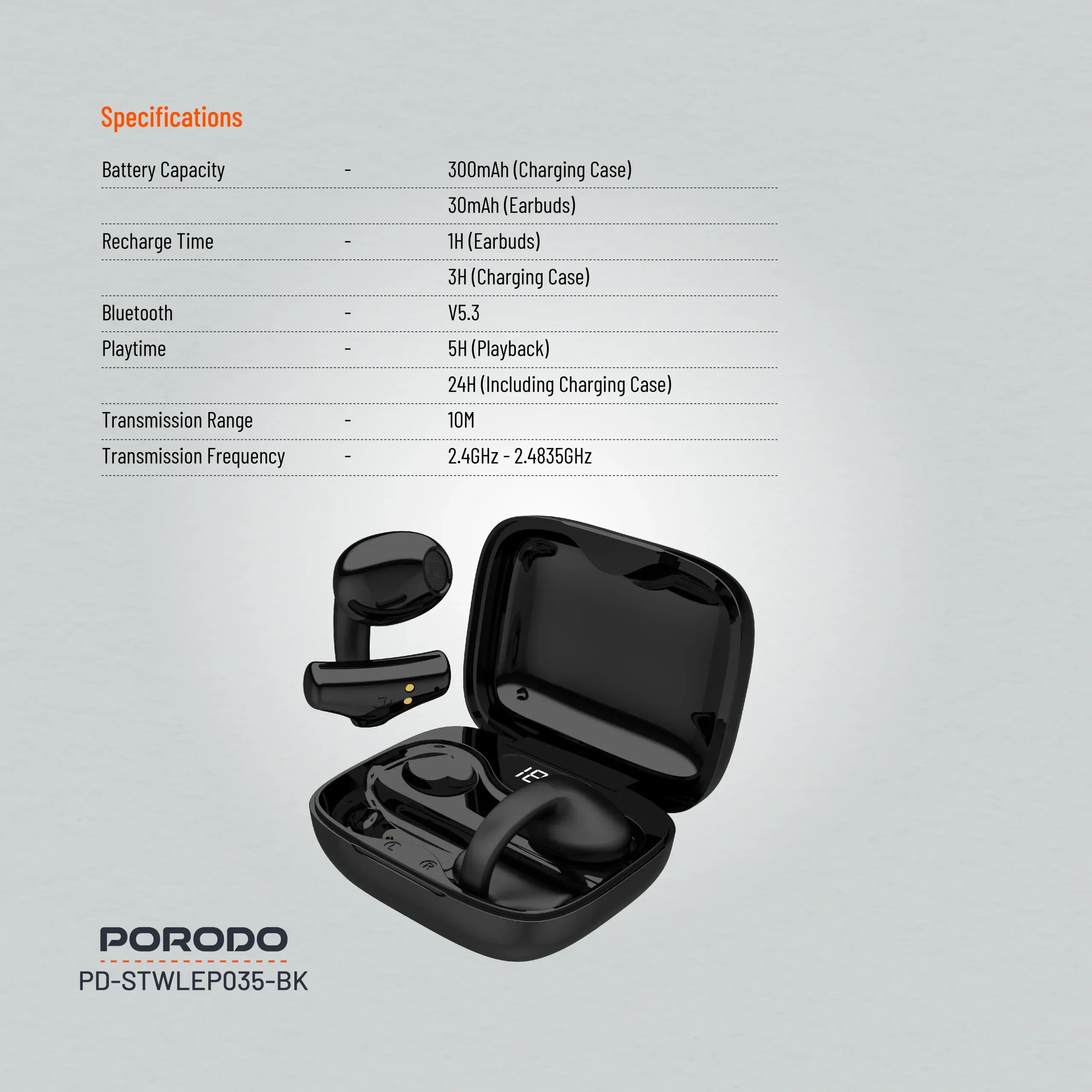 PORODO SOUNDTEC TWS EAR CLIP – BLACK