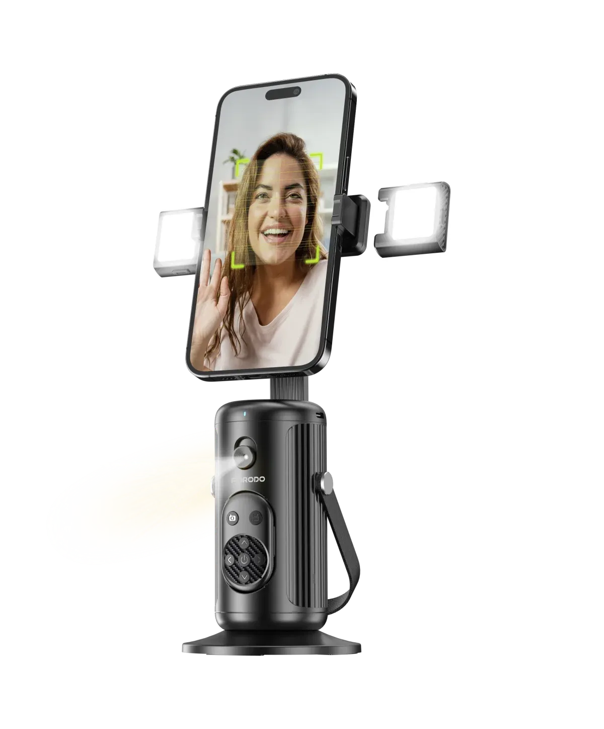 با پایه هوشمند ردیاب چهره Porodo ساخت محتوا برای شما ساده و بی‌نیاز از دست می‌شود. باتری ۱۸۰۰ میلی‌آمپر‌ساعتی تا ۵ ساعت ردیابی روان چهره یا ۲ ساعت چرخش مداوم را فراهم می‌کند تا همیشه شات‌های دقیقی داشته باشید. امکان کنترل با ژست دست وجود دارد و نور پرکن جداشدنی (Fill Light) به ویدئوهای شما جلوه‌ای حرفه‌ای می‌دهد. همچنین یک شاتر بی‌سیم نیز همراه دستگاه است. شارژ سریع از طریق درگاه Type-C انجام می‌شود؛ پایه در ۳.۵ ساعت و ریموت در ۱ ساعت به‌طور کامل شارژ می‌شوند. Porodo Smart Mount مجموعه‌ای کامل برای ولاگ، تماس‌های ویدیویی یا لایو استریم است؛ ردیابی روان، نورپردازی درخشان و کنترل آسان خلاقیت شما را یک سطح بالاتر می‌برد.