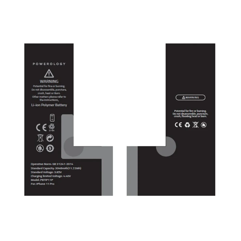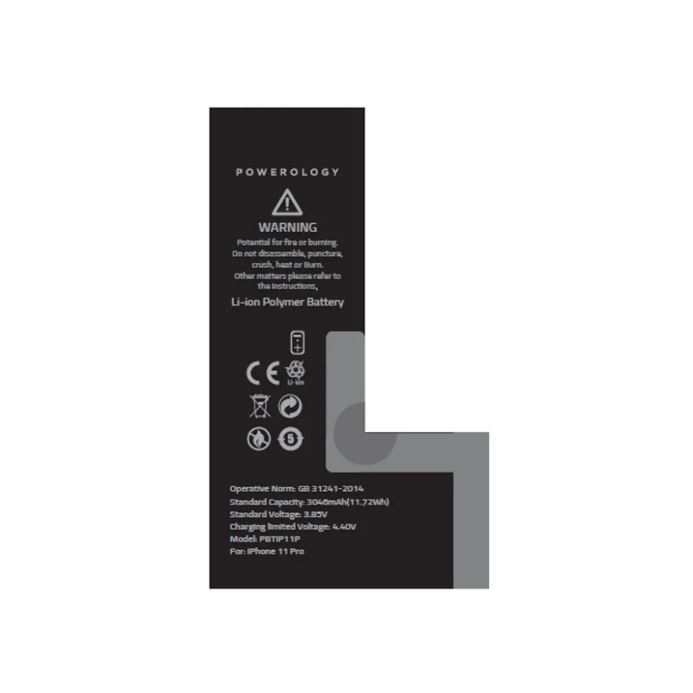 Powerology Li-ion Polymer Phone Battery 3046mAh / 11.72Wh for iPhone 11 Pro – Black