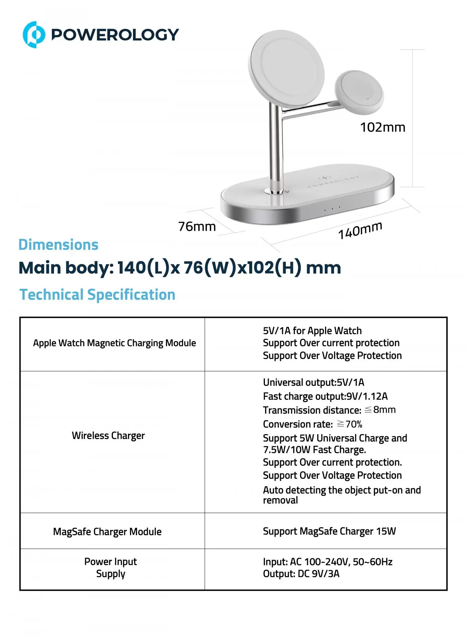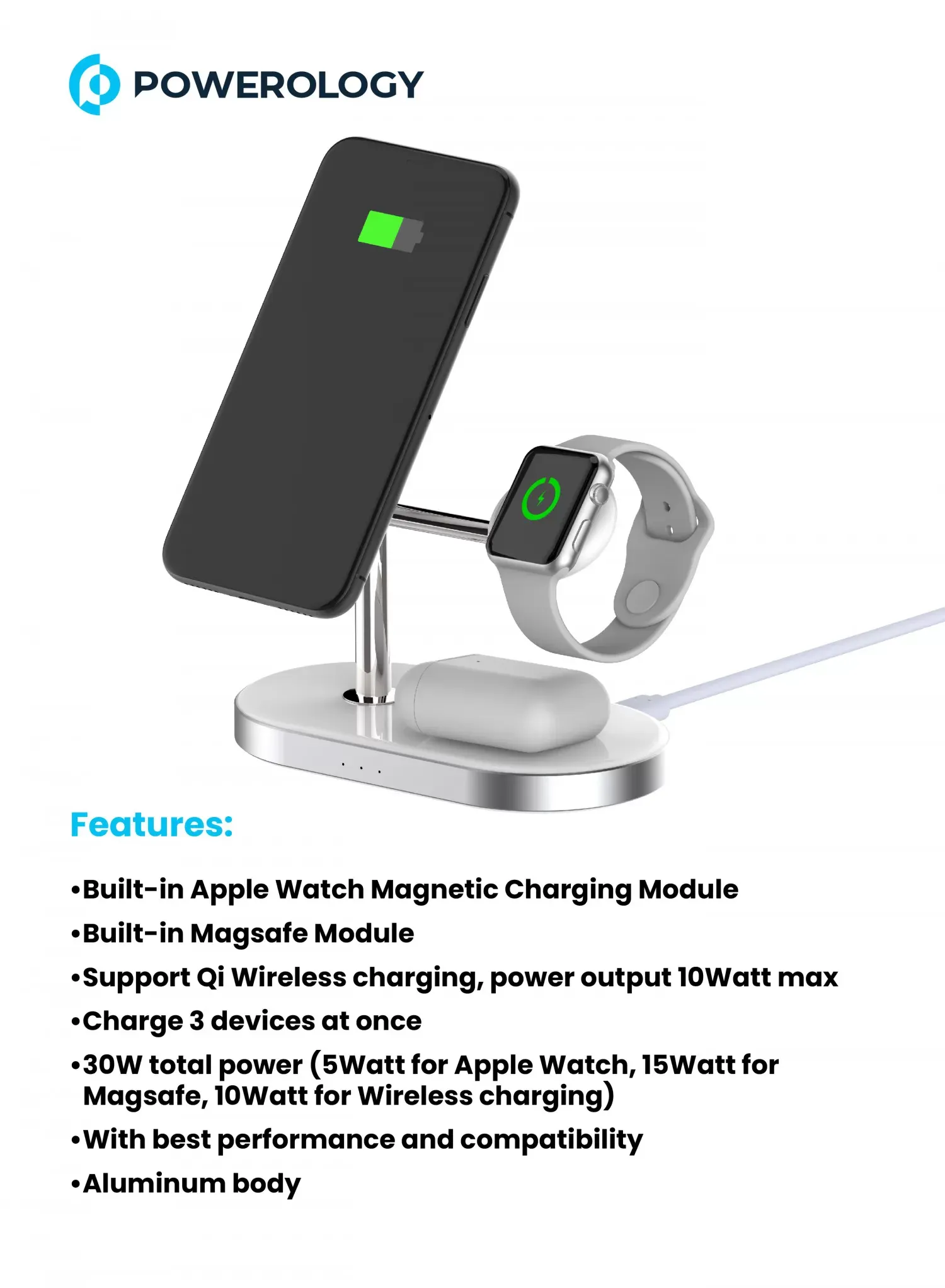 Powerology 30W 3 in 1 MFI Charging Dock with Built-in Apple Magsafe 15W