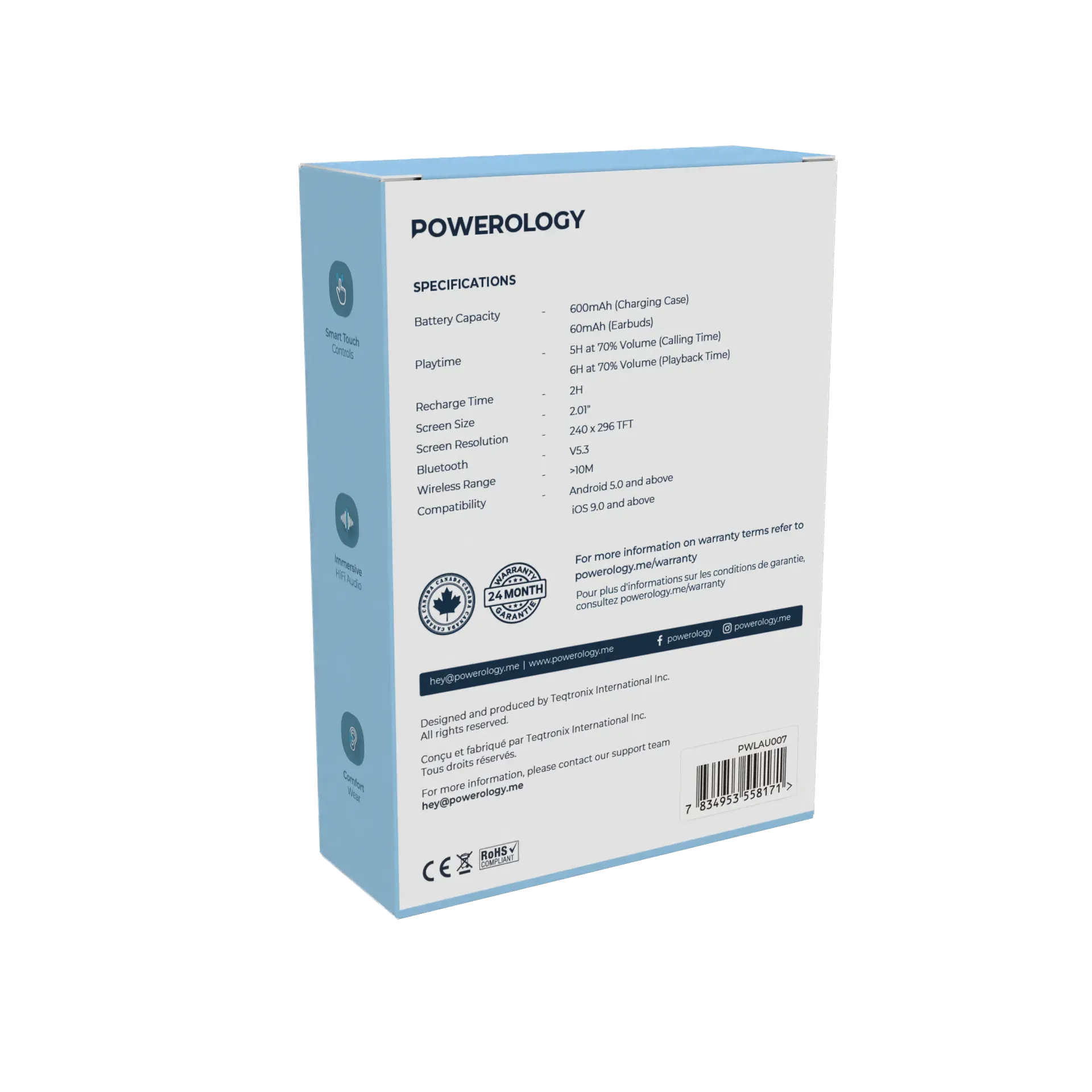 Powerology Air Conduction ENC TWS Earbuds and Charging Case with Display 60mAh