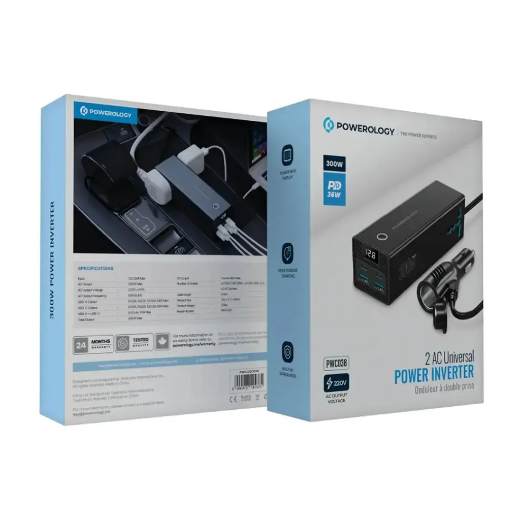 اینورتر فندکی پاورولوژی مدل PWCUQC044 ظرفیت ۳۰۰ وات