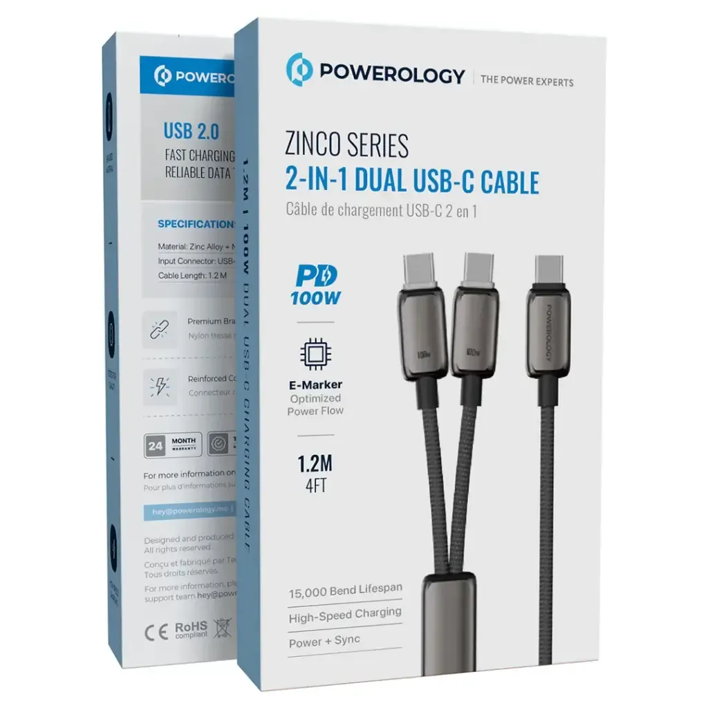 Powerology Zinco Series 2-In-1 Dual USB-C Cable