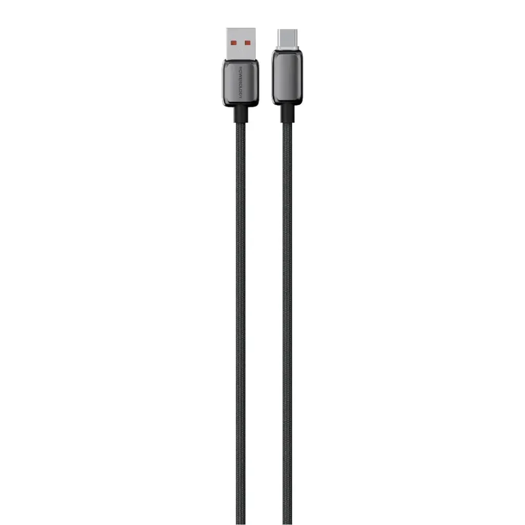 این کابل USB-A به USB-C با رنگ خاکستری تیره و طراحی مینیمال عرضه می‌شود. جنس بدنه آن از متریال بادوام و مقاوم ساخته شده تا در برابر خمیدگی و کشش‌های مکرر مقاومت بالایی نشان دهد. ظاهر ساده و شیک آن به راحتی با سایر لوازم دیجیتال هماهنگ می‌شود.